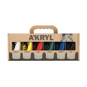 A’kryl acrylic paint set in 100 ml tubes in 6/12 colors.